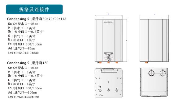 四、康丹森冷凝鍋爐規(guī)格及連接件